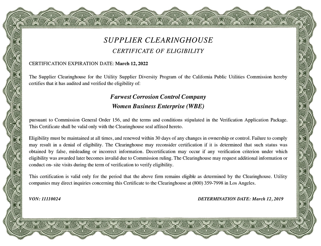 Farwest Corrosion Control Company is an industry pioneer and leader in comprehensive cathodic protection and corrosion control services and related products. Cathodic protection and corrosion control services include products, engineering, and installation.